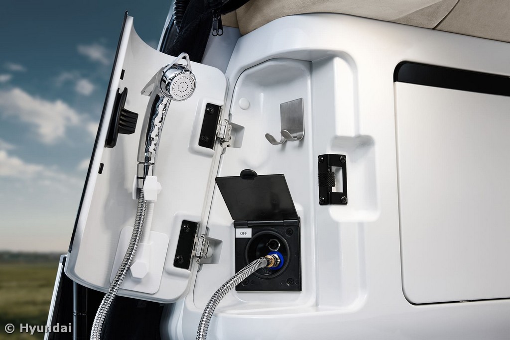 Pensado para aventureiros que valorizam uma maior autonomia para além dos parques de campismo tradicionais, o Hyundai STARIA Camper Concept está preparado para estadias prolongadas fora da rede elétrica. Integrado no tejadilho elevatório encontra-se um painel solar em compósito leve de 520 W, capaz de gerar até 2,6 kWh de eletricidade por dia, considerando uma média de cinco horas de exposição solar diária. Este sistema pode contribuir para o aumento da autonomia ou alimentar equipamentos a bordo, como um frigorífico de 36 litros, um duche portátil e o sistema de climatização do habitáculo, permitindo viagens mais longas e autossuficientes.
