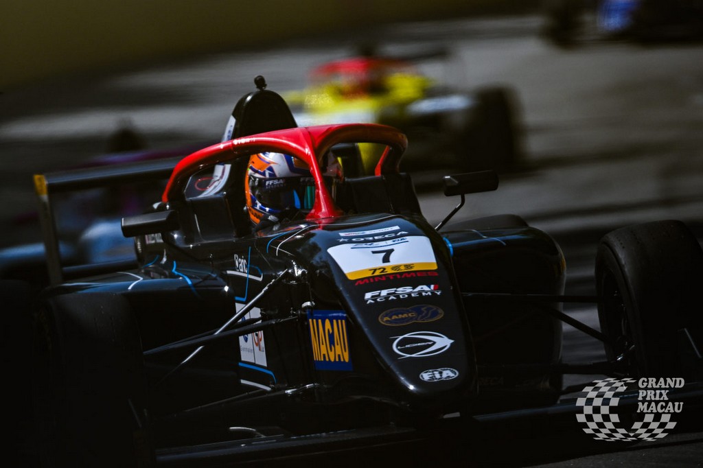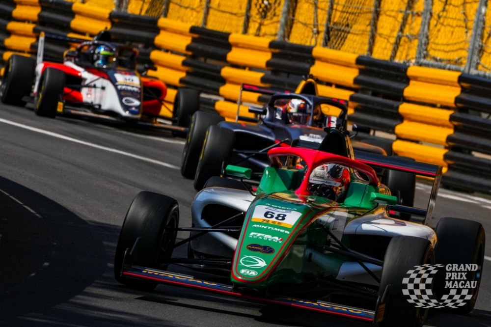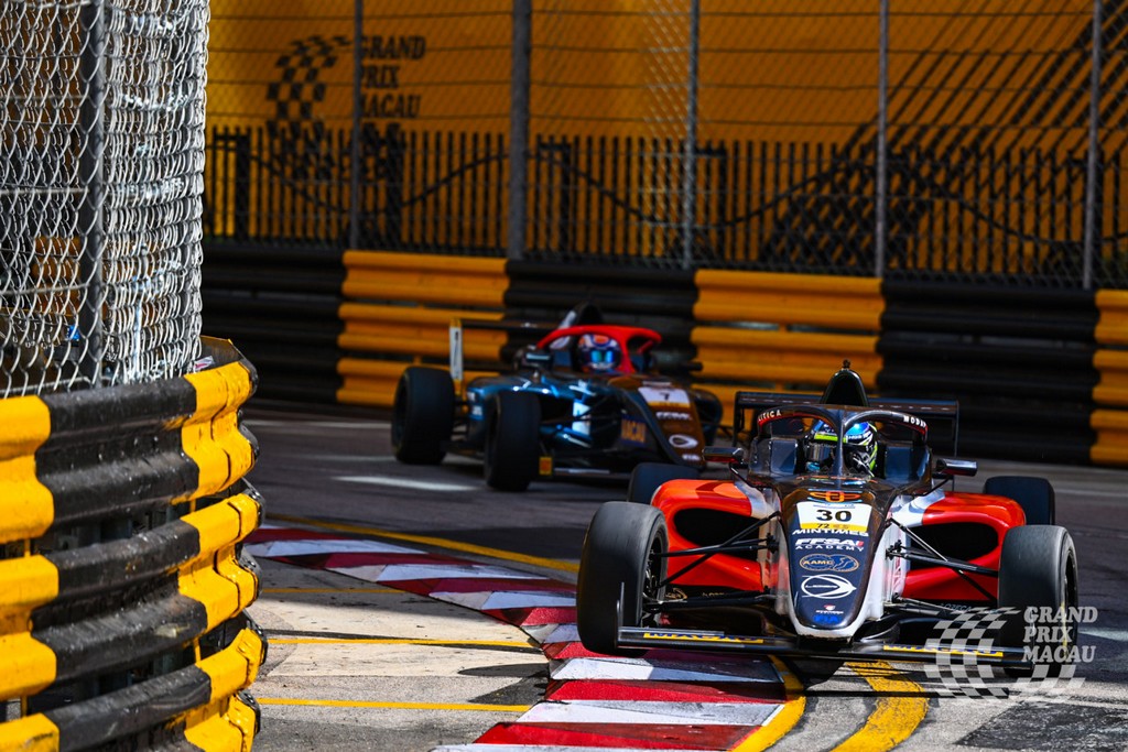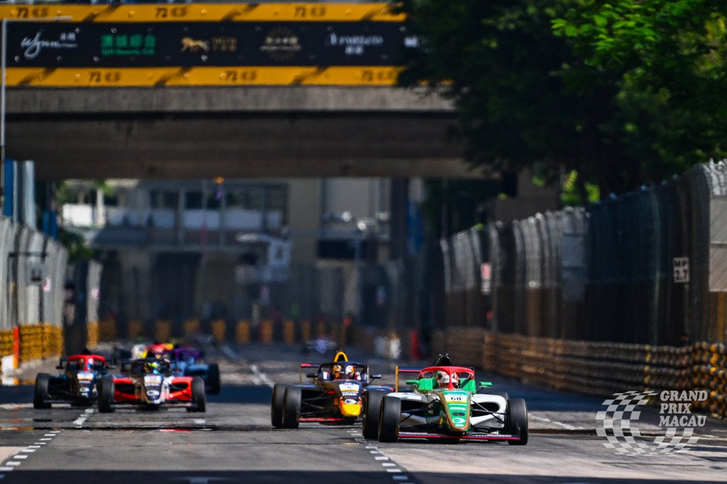 Chinese F4 champion Zhang Shimo spent most of the race shadowing Roussel, but he was a victim of the aftermath of McLaughlin’s incident, damaging the right-front of his car and dropping from a potential third place to seventh. Up to third in the final results therefore came Frenchman Rayan Caretti, who had passed Ary Bansal at Lisboa on the fifth lap. Bansal, the Indian who claimed the GB4 title this year, finished just behind Caretti in fourth and narrowly ahead of Hong Kong’s Kimi Yu Tsai Chan and South Korean Kyuho Lee. The gap between Caretti in third and Lee in sixth in a photo-finish was just 0.630 seconds!