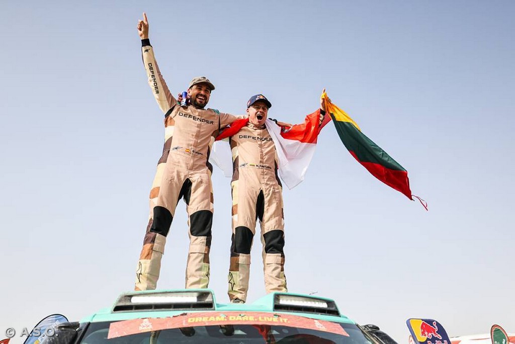 Two Mitsubishi Pajeros bumped against the British car. The Defender is the second non-Japanese vehicle to take the spoils since the Buggy Sunhill from the inaugural edition, bringing a close to four years of Toyota hegemony. Raišys is the fifth champion of the race. His first joint campaign with the Frenchman Christophe Marquès, a consummate professional and master navigator, was a resounding success, echoing the maiden victory of Genestier's Range Rover in the 1979 Dakar.