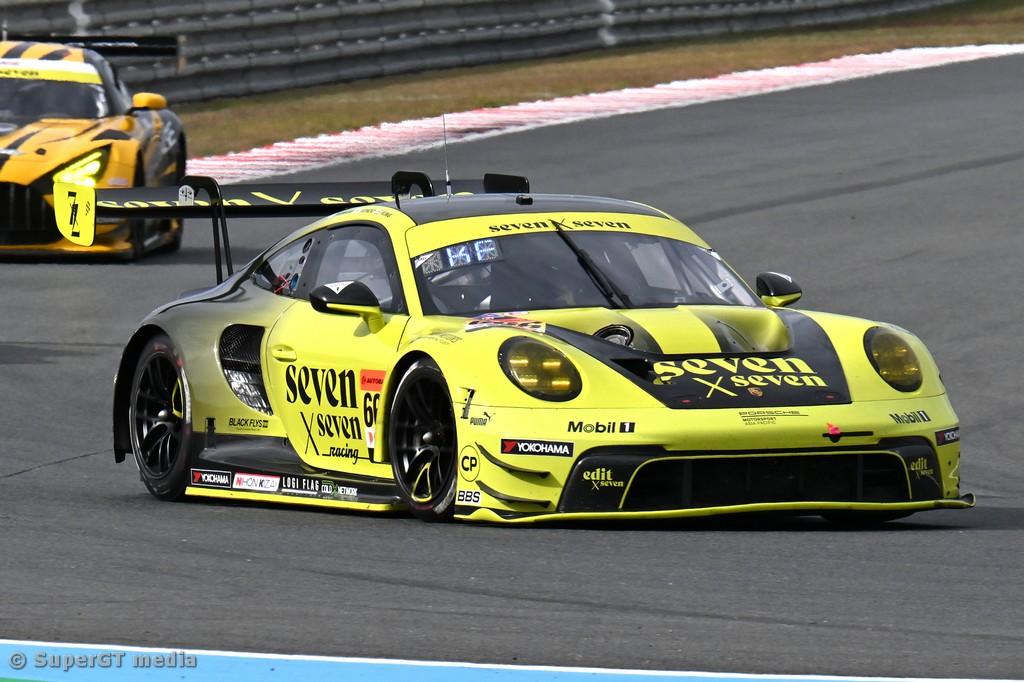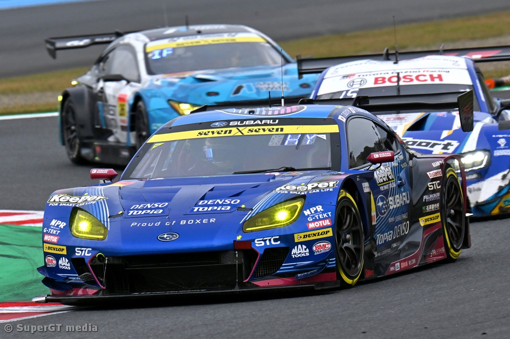 In the GT300 class race, the pole-starting No. 61 SUBARU BRZ R&D SPORT (Takuto Iguchi / Hideki Yamauchi) led the race in the first half, while Shiotsu in the No. 5 MACHSYAKEN AIR BUSTER MC86 MACH GO (Yusuke Shiotsu / Iori Kimura) that had started from 2nd position on the grip ran conservatively in the first half with the strategy of making no tire change in its pit stop to shorten the time needed for pit work.