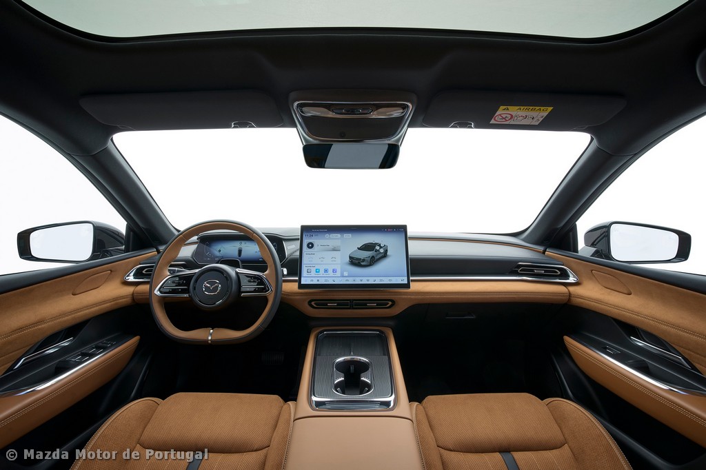 Se o seu design exterior exibe uma reinterpretação do design Kodo - A Alma do Movimento, nos interiores o o Mazda6e inspira-se no conceito japonês de ma, que enfatiza a simplicidade e a organização dos espaços, subjacente a um ambiente de características premium.