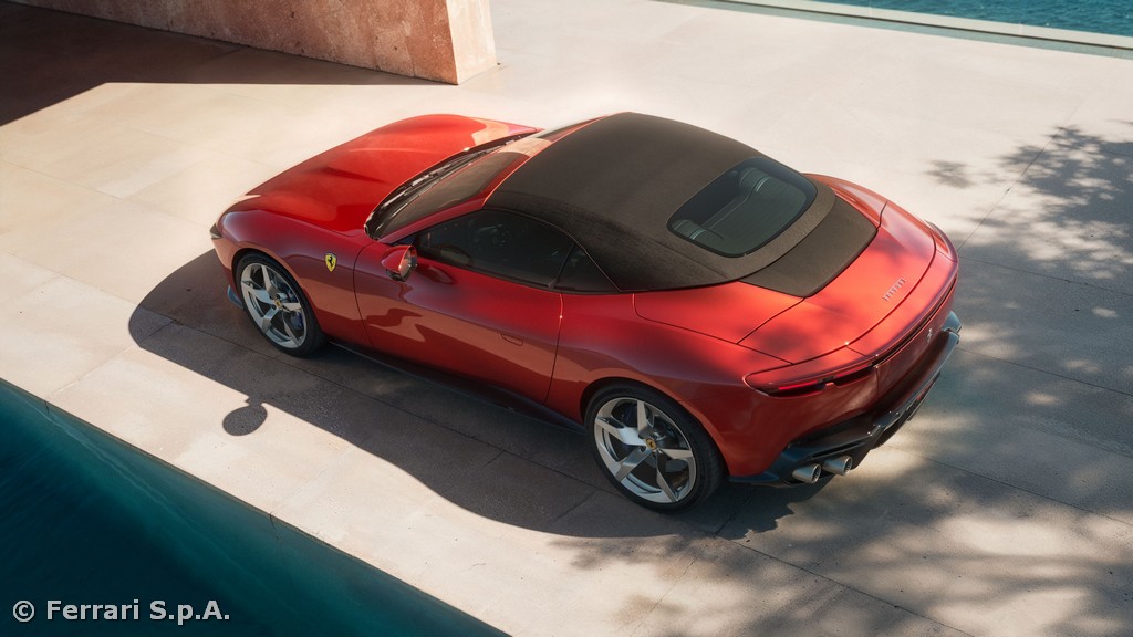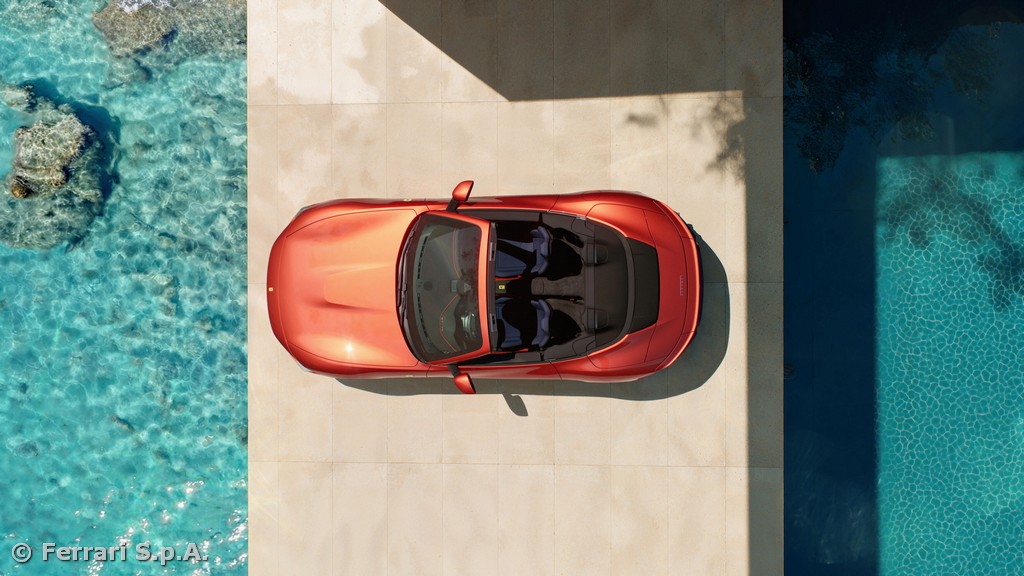 The car exemplifies the Ferrari sporting lifestyle in an open-top configuration: a seamless blend of performance, elegance, driving pleasure, ease of use and versatility. With the roof down, direct contact with the road and the sensations of open-air driving become integral to the experience, without compromising everyday usability or comfort.