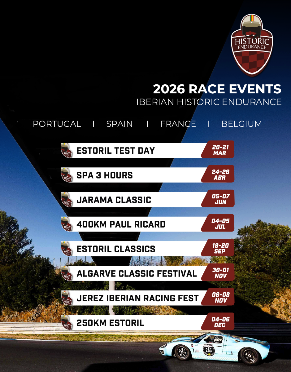 Alberto e Tomaz Velez‑Grilo alinharão com o seu habitual BMW 1800 TiSA (H-1965), realizando a sua estreia na corrida, enquanto Manuel e Diogo Ferrão regressam a uma pista que conhecem bem, ao volante do seu Porsche 911 2.3 ST (H-1971). O mesmo se aplica a Piero e Guilhermo dal Maso, também eles experientes nestas andanças, que competem com o seu Porsche 911 2.3 ST (H-1971), quinto classificado na sua classe na edição do ano passado e vencedor do “1000km Trophy” de 2024 e 2025.