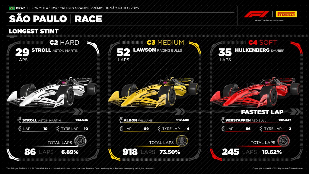 An ample variety of tyre strategies involving all three compounds helped to make the Brazilian Grand Prix one of the most stunning of the season, with racing right to the finish line.