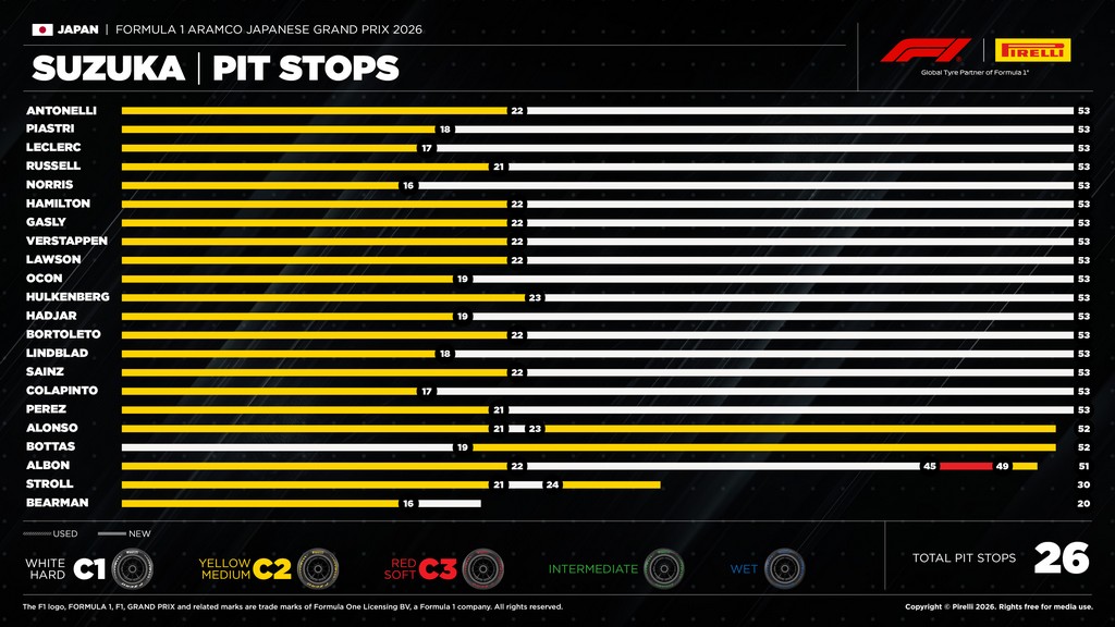 As with the previous two rounds, the third race of the season saw significant shuffling through the field after lights out. While Antonelli struggled off the line, Oscar Piastri and Charles Leclerc enjoyed excellent starts. This allowed Piastri to seize an immediate lead, which the McLaren driver maintained until his scheduled pit stop.