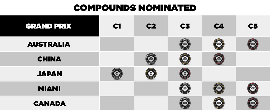 The softest compounds in the range will be used over the next race weekends, both featuring the Sprint format, in Miami and Montreal. At both circuits C3, C4 and C5 will be nominated as Hard, Medium and Soft respectively.