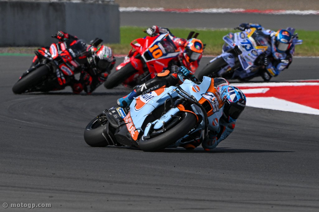 P7 and P8 went to Pertamina Enduro VR46 Racing Team duo Franco Morbidelli and Fabio Di Giannantonio, while Miguel Oliveira (Prima Pramac Yamaha MotoGP) was promoted from P10 to P9 and the final point after Marini's penalty.