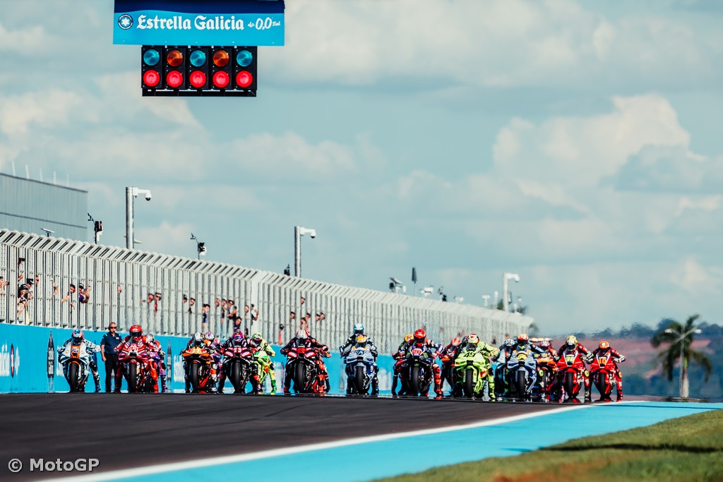 After a poorer start on Saturday, Bezzecchi nailed it on Sunday to take the holeshot, with Di Giannantonio slotting into second from pole and Marc Marquez holding third. Martin was fourth, with one big mover off the line proving Pedro Acosta (Red Bull KTM Factory Racing) as he went from P9 to P5.