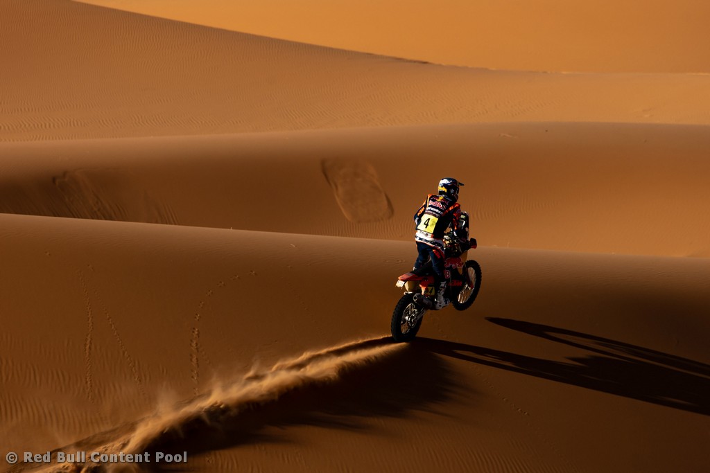 Red Bull KTM Factory Racing biker Daniel 'Chucky' Sanders remains on course for a perfect W2RC season. Four wins already this year – starting with a maiden Dakar victory – have put the Australian rider on the brink of making history. Sanders currently leads the two-wheel contest in Morocco, but only by 38 seconds from Honda's Tosha Schareina in the RallyGP rankings. The stage is set for a nail-biting battle to the finish.