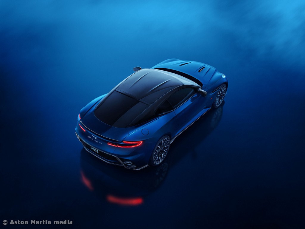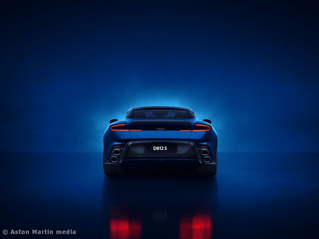 O design da traseira do DB12 S faz uma afirmação enfática, captando a essência da potência aumentada, da dinâmica apurada, e de uma sonoridade inesquecível. Uma vez mais, a aerodinâmica desempenha um papel fundamental, com o spoiler traseiro fixo a adicionar um maior dramatismo estético, além de melhorar a estabilidade a alta velocidade. Logo abaixo do mesmo encontra-se o novo difusor traseiro, que reduz a sustentação, mas contando com espaço suficiente para albergar os dois pares de ponteiras de escape sobrepostas, que são a assinatura do DB12 S, emolduradas por um para-choques traseiro mais largo, para o máximo impacto visual.