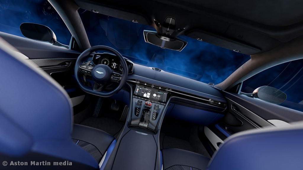 Em comum com os restantes modelos que exibem a insígnia “S” na revitalizada gama da Aston Martin, o interior do DB12 S apresenta um conjunto de pormenores distintivos exclusivos do modelo de referência. Entre eles, o que mais se destaca é o acabamento anodizado vermelho do comando rotativo em metal serrilhado dos modos de condução, que também combina com a cor dos cintos de segurança, dos rebordos contrastantes dos bancos, das costuras contrastantes, e do bordado dos encostos de cabeça.
