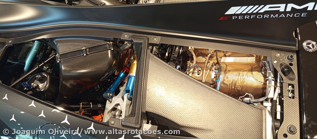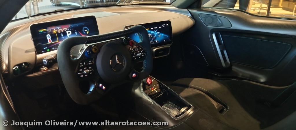 Um modelo desta natureza é espetacular até parado. Na apresentação exclusiva a clientes e parceiros especiais, foi possível, mesmo sem movimento, presenciar alguns detalhes únicos do funcionamento do Mercedes-AMG ONE. Destaque para o “ritual” de ligar o motor (obriga a vários passos), para a elevação da carroçaria ou o levantamento dos ailerons/grelhas de refrigeração.