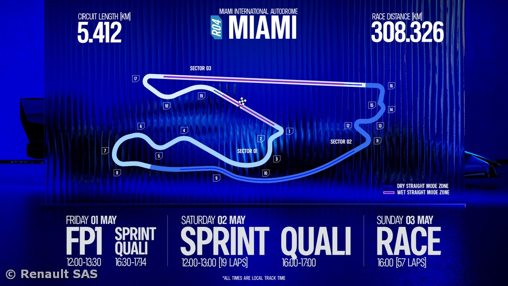 The team's full focus is now on Miami and competing once again. The Miami International Autodrome is hosting the second Sprint weekend of the year and has become known for being a quintessentially modern Formula One venue. The track, which winds round the Hard Rock Stadium, has a mixture of high-speed flowing corners, long straights, and narrow street-circuit sections. The opening Free Practice 1 session has been extended to 90 minutes and will be the only time drivers have to learn the track in the new generation of cars before Sprint Qualifying on Friday afternoon to determine the grid for Saturday's Sprint Race.