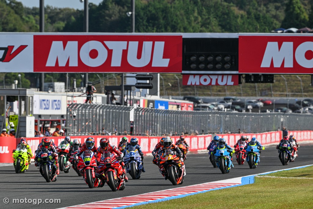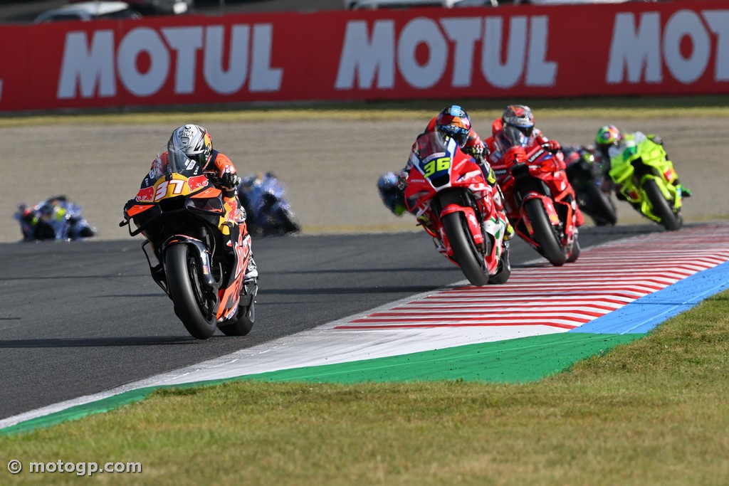 Francesco Bagnaia: back in business. Ducati Lenovo Team's double MotoGP World Champion returned to form with an almighty bang as the Italian cruised to a Tissot Sprint gold medal at the Motul Grand Prix of Japan, beating teammate Marc Marquez by 1.8s. The latter, meanwhile, takes a huge stride towards being crowned 2025 MotoGP World Champion on Sunday with that P2, because Alex Marquez (BK8 Gresini Racing MotoGP) finished P10, meaning no points were scored in the blue corner. And after a slightly dramatic day, Pedro Acosta (Red Bull KTM Factory Racing) salvaged a Saturday P3 for the Austrian manufacturer.