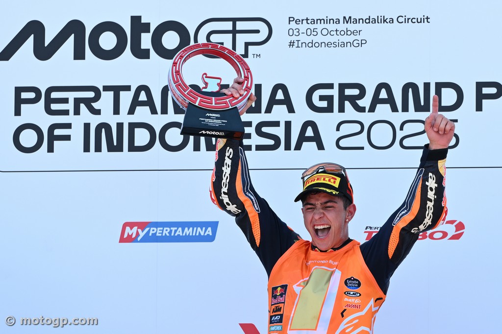 As the first rider to win the Rookies and JuniorGP in the same year, Rueda’s arrival promised much and the #99 has more than delivered in 2025. Another victory in Lombok, added to drama for his fellow contenders, sees the #99 secure the 2025 Moto3 World Championship.