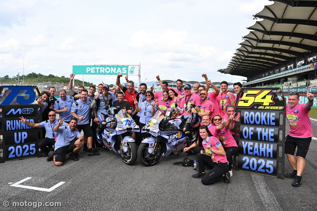 Aldeguer didn’t have enough time left to catch and challenge teammate Marquez for P2, and no one could lay a glove on Pecco. The #63 delivered a faultless Saturday in Sepang to win the Tissot Sprint from pole, with the silver and bronze medals going to the Gresini garage as Marquez finally clinched P2 overall to create history – a Marquez 1-2 in 2025. And on the other side of the box, Aldeguer’s P3 saw him crowned the star rookie of the campaign – and even with a late tyre pressure penalty, that doesn't change things.