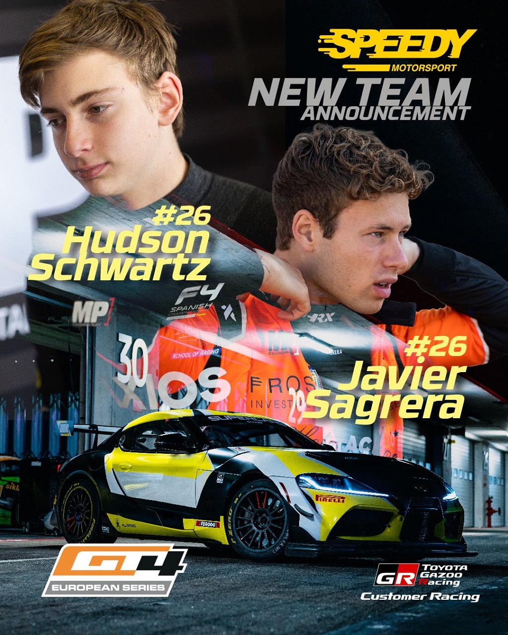 O norte-americano Hudson Schwartz, de apenas 16 anos, compete na Fórmula 4 espanhola. É um dos mais jovens talentos em ascensão no panorama internacional, tendo vencido a Lucas Oil Formula Car Race Series. Schwartz tem mostrado uma progressão notável ao longo da temporada, reforçando a aposta da Speedy em jovens de elevado potencial.