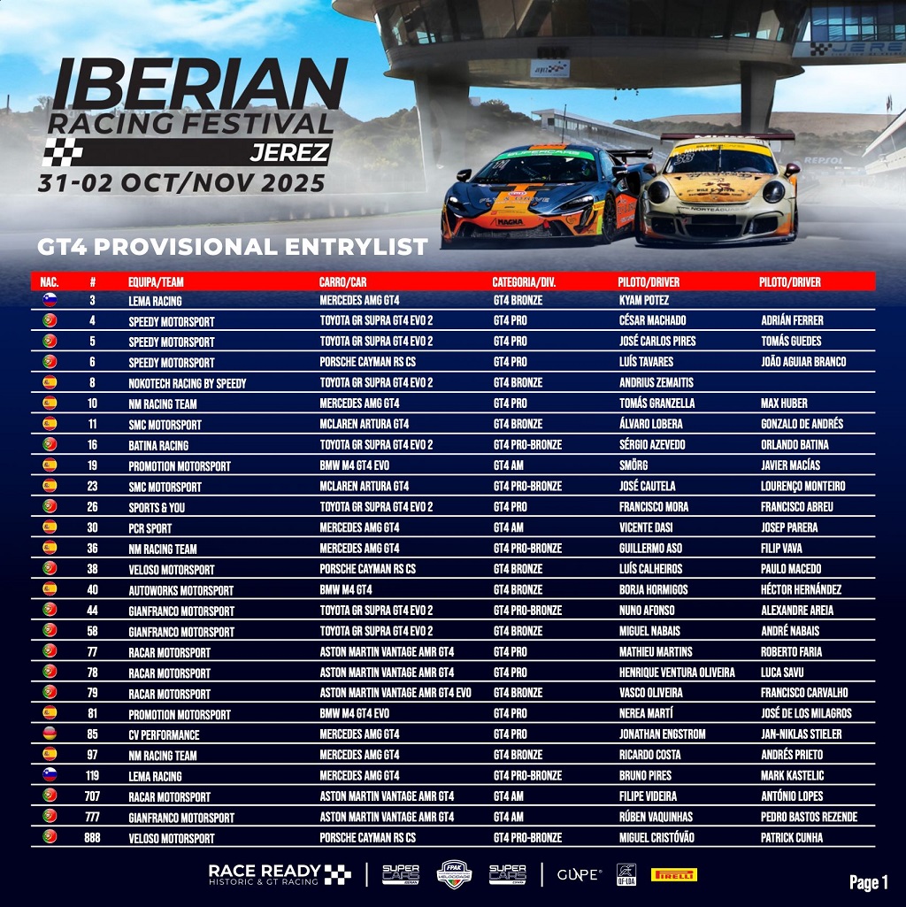 No ano passado, César Machado e Jan Durán conquistaram a primeira corrida ao serviço da Speedy Motorsport, enquanto Mathieu Martins e Manuel Gião triunfaram na segunda pela Racar Motorsport. Este ano, César Machado regressa acompanhado de Adrián Ferrer no Toyota GR Supra GT4 Evo 2, e Mathieu Martins une forças com Roberto Faria ao volante do Aston Martin Vantage AMR GT4 da Racar Motorsport, num plantel de luxo que junta experiência e juventude, com títulos em aberto e ambições renovadas.